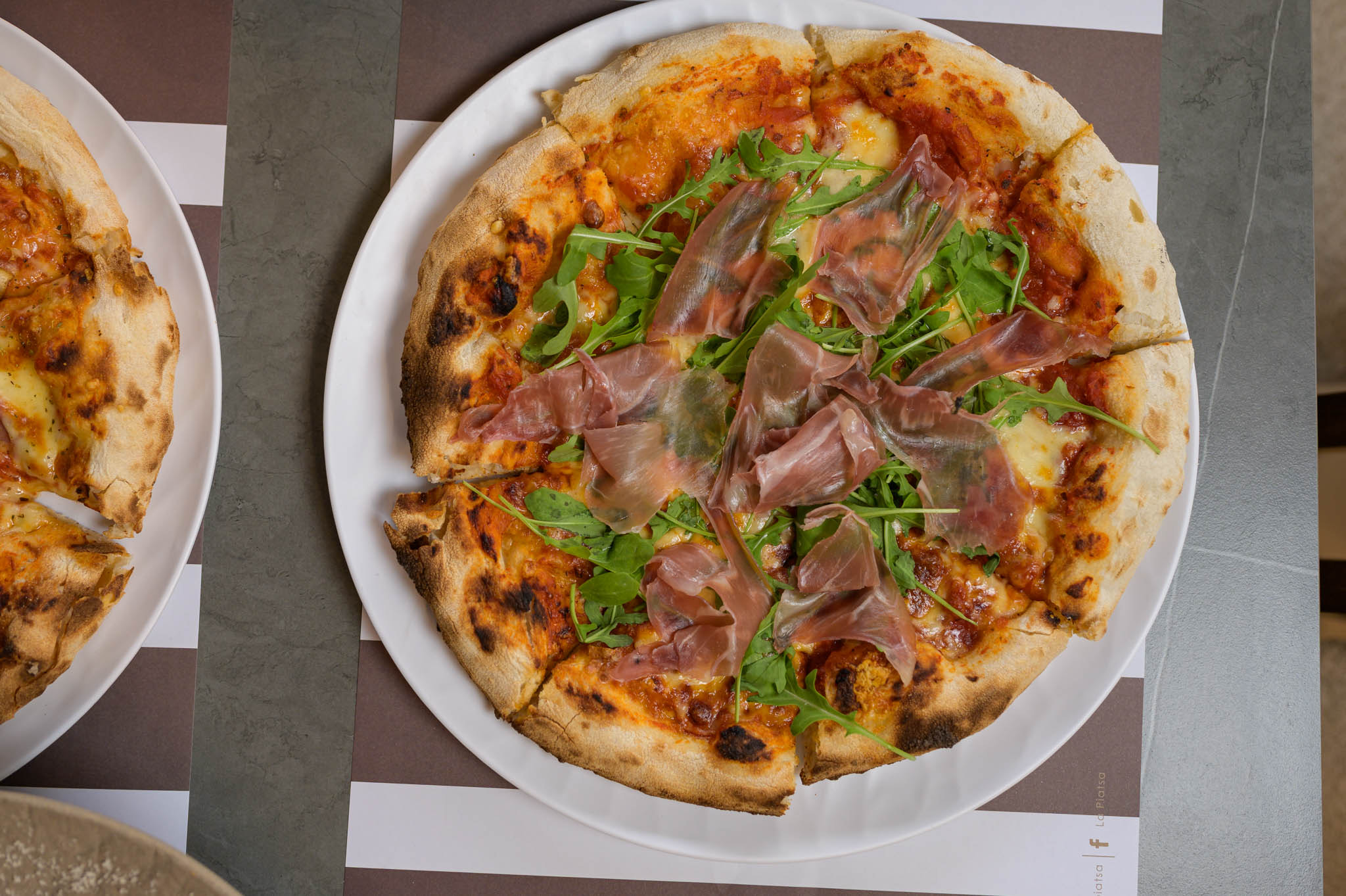 Δοκιμάσαμε αυτή με το προσούτο, που ξεχώριζε τόσο για τον νόστιμο συνδυασμό των υλικών της, αλλά και για την κρατσανιστή ζύμη της, με αποκορύφωμα το τραγανό στεφάνι περιμετρικά. Φρέσκια ντομάτα, προσούτο crudo, ρόκα, παρμεζάνα και φρέσκια μοτσαρέλα.