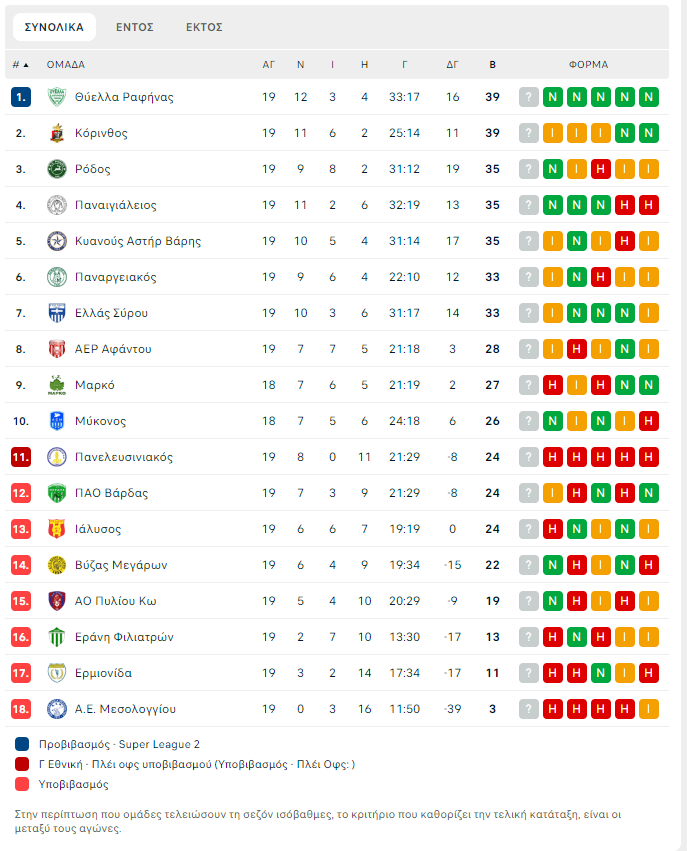 Aναλυτικά τα αποτελέσματα της 19ης αγωνιστικής