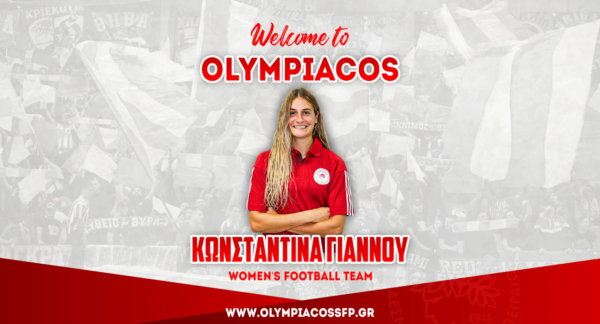 «Ο ΟΛΥΜΠΙΑΚΟΣ Σ.Φ.Π. ανακοινώνει την έναρξη της συνεργασίας του με την Κωνσταντίνα Γιάννου (ημ. γέννησης 1/11/1998). Η διεθνής επιθετικός με τις Εθνικές ομάδες Κ17 και Κ19 υπέγραψε το συμβόλαιό της και εντάσσεται στο ρόστερ της ομάδας ποδοσφαίρου Γυναικών.»