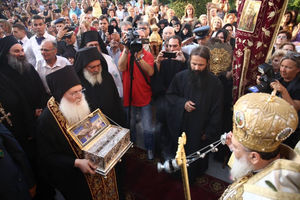 Στην υποδοχή παρευρέθηκε και ο Μητροπολίτης Χαλκίδας κ. Χρυσόστομος, ενώ αμέσως μετά την υποδοχή ακολούθησε δέηση και αργότερα Ιερά Αγρυπνία στην οποία ψάλθηκε η Ιερά Ακολουθία της Τιμίας Ζώνης.